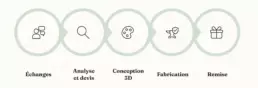 Si votre demande est très précise, je pourrai y répondre d’autant plus rapidement. Si ce n’est pas le cas, je peux vous proposer mon expertise et mon conseil pour définir un design harmonieux mais le processus créatif nécessaire sera in fine plus important.